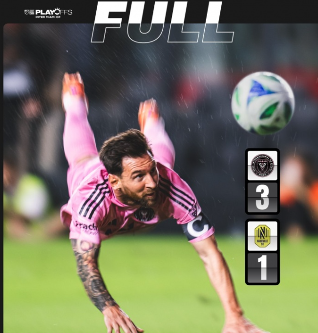 全场比赛结束,迈阿密国际以3-1战胜纳什维尔,在两回合的淘汰赛中占据晋级的主动权。双方次回合较量将于11月2日移师纳什维尔主场进行。